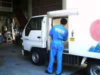 かまぼこ屋さんの冷凍車がガス漏れで入庫。